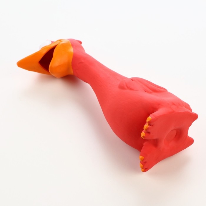 Игрушка пищащая для собак из латекса "Я - Утка, я улыбаюсь!", 19 см, красная/жёлтая