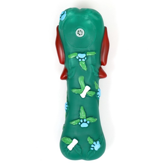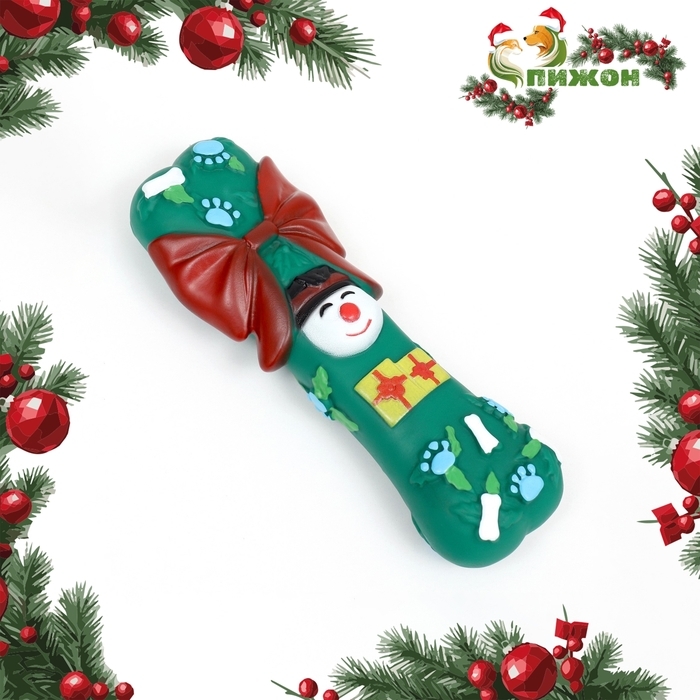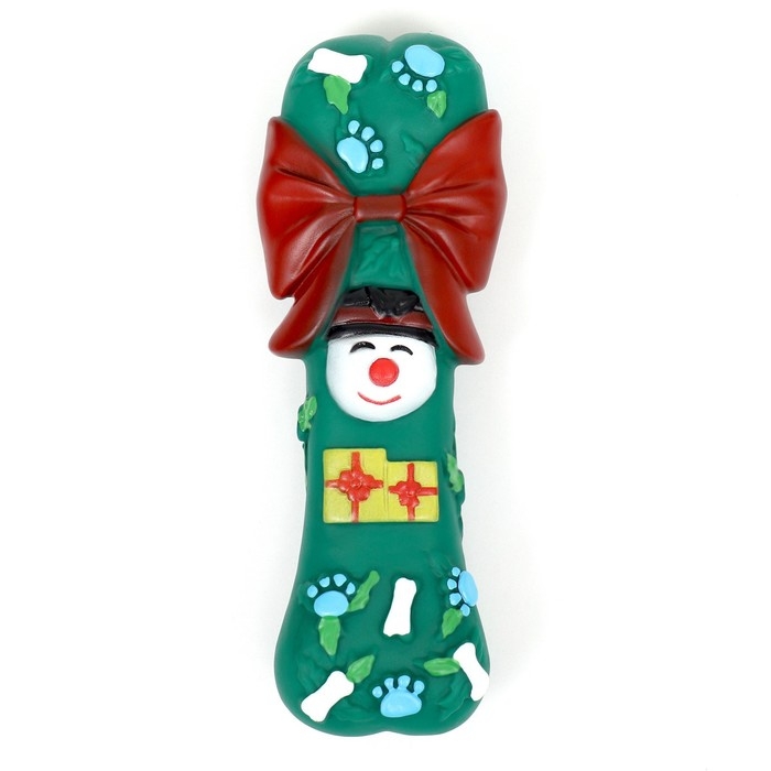 Игрушка пищащая для собак "Новогодняя кость с бантиком", виниловая, 18 х 5,6 х 4 см, зелёная