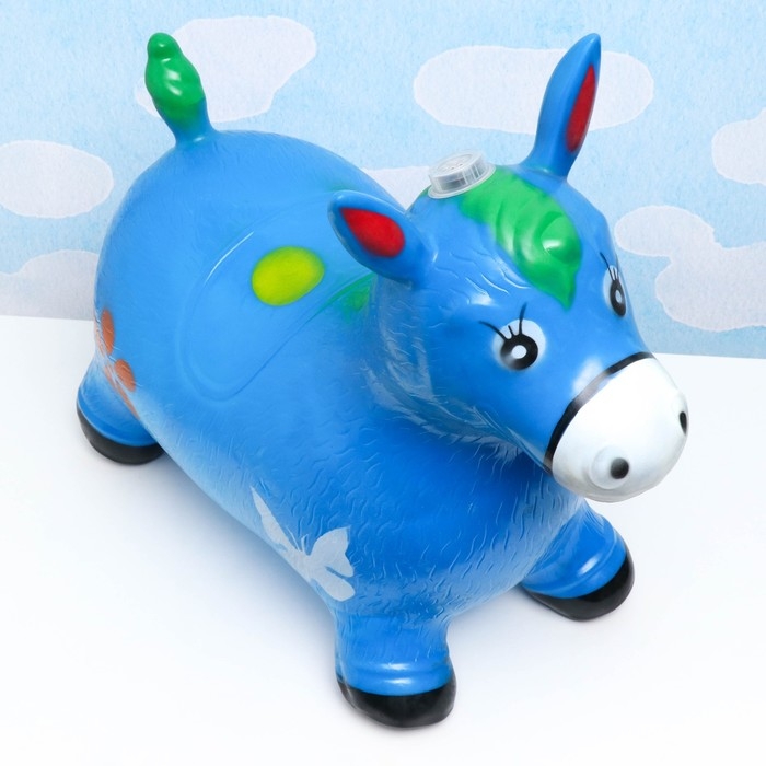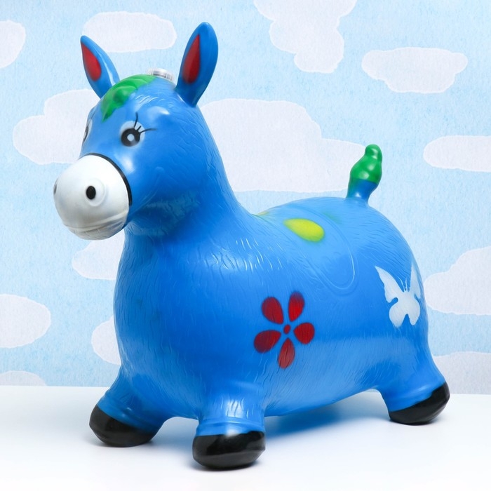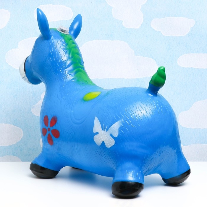 Игрушка - прыгун детская "Музыкальная Лошадка" резиновая надувная, 50х30см, синяя