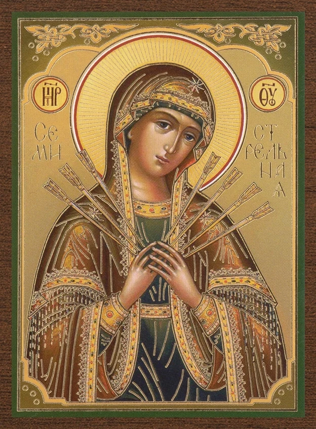 Икона БМ "Семистрельная" 4х6 на МДФ-6