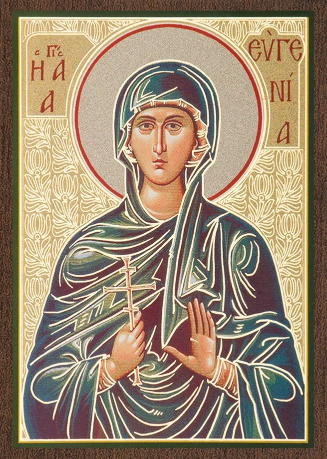 Икона "Евгения Римская" 6х9 на МДФ-6