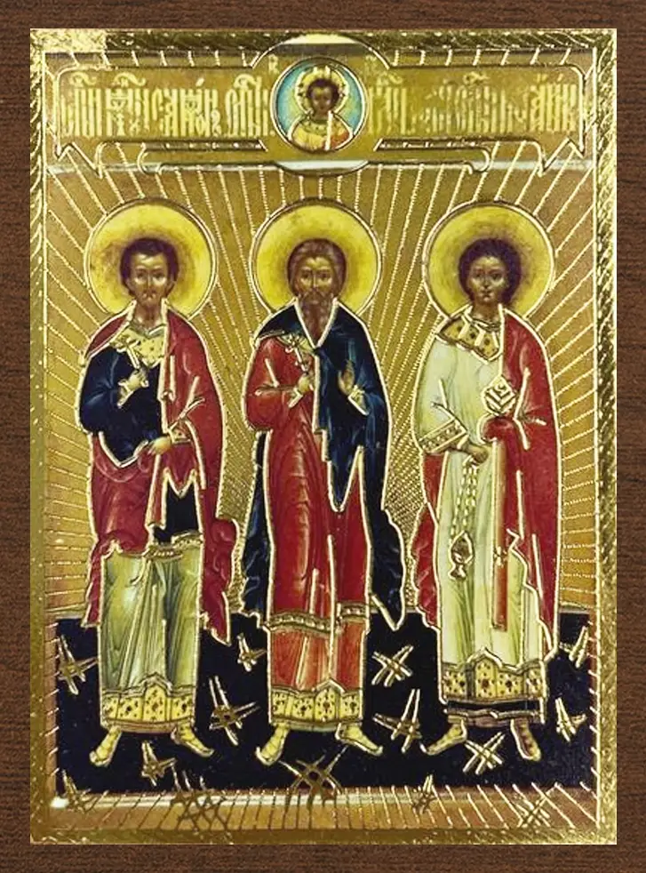 Икона "Гурий, Самон и Авив" 4х6 на МДФ-6