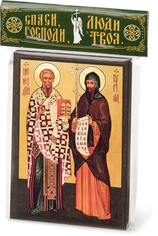 Икона "Кирилл и Мефодий" 6х9 на МДФ-6