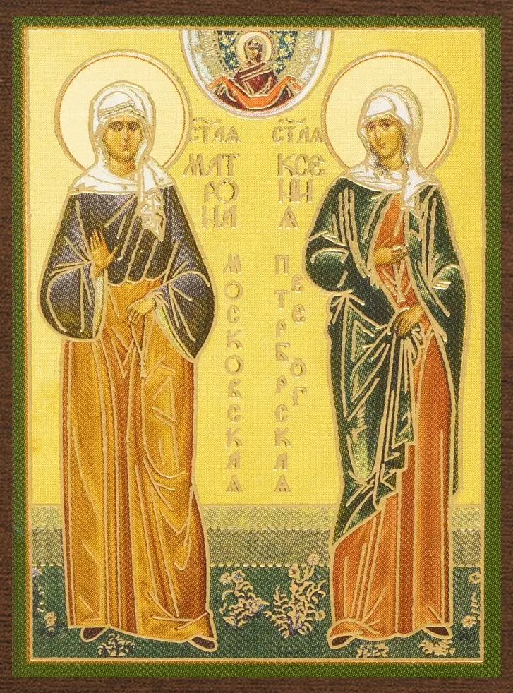 Икона "Ксения Петербургская и Матрона Московская" 4х6 на МДФ-6