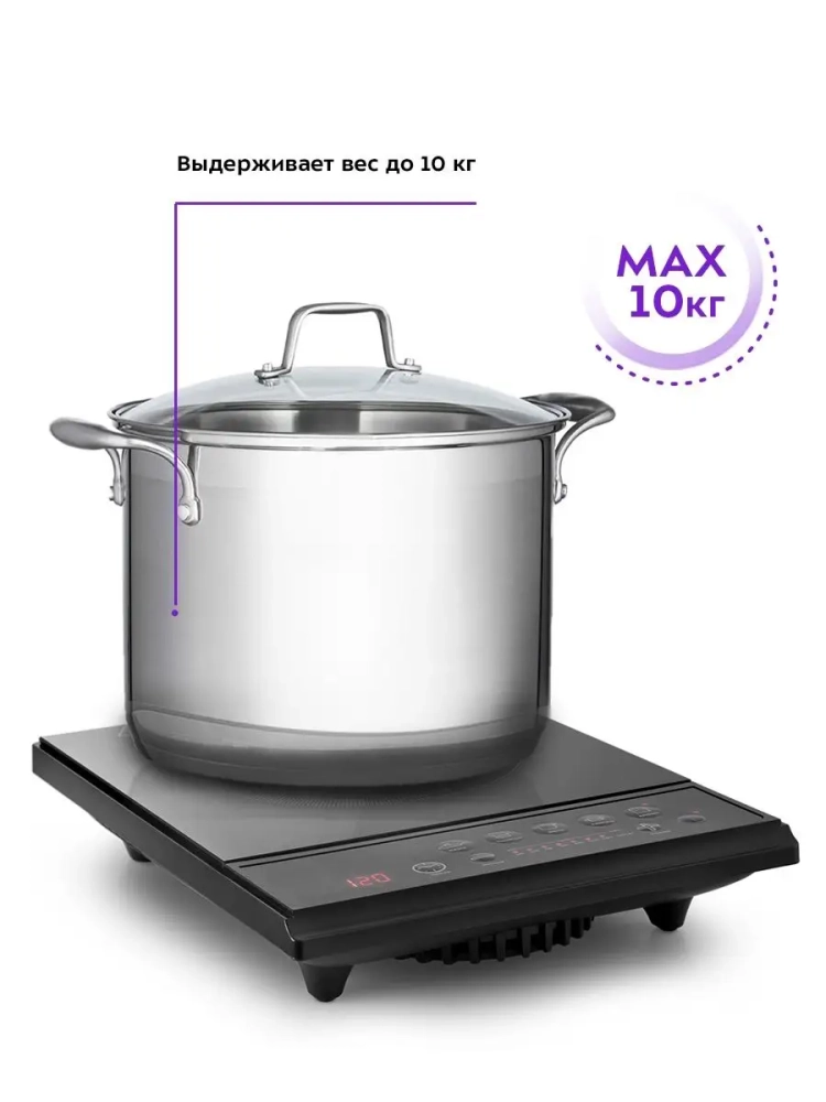 Для индукционной плиты подходит посуда с дном из ферромагнитных материалов: стальная, чугунная, эмалированная посуда, посуда из нержавеющей стали, а также любая другая, предназначенная для индукционного нагрева (обычно такая посуда имеет специальную маркировку). Подходящую посуду легко определить с помощью магнита — если он примагничивается к дну, такая посуда, скорее всего, подойдет. Для удобства в комплекте с плитой идет подарочный магнит с фирменным логотипом, которым вы можете воспользоваться для проверки.