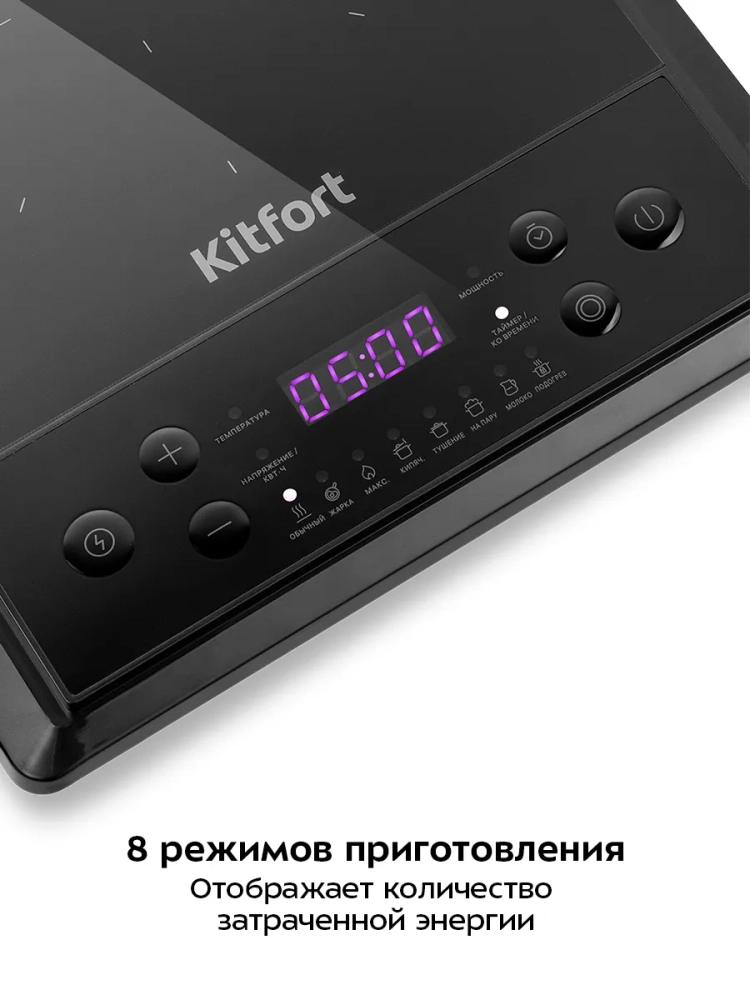 Индукционная плита Kitfort КТ-158 имеет защиту от перегрева, выдерживает перепады напряжения.
