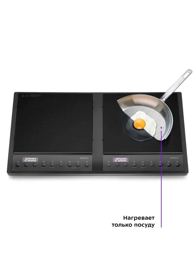 Индукционная плита Kitfort КТ-109 представляет собой один из новых экологически чистых кухонных приборов, разработанных по новейшим европейским, американским и японским технологиям. Индукционная плита имеет очень высокий коэффициент полезного действия (до 94 %), что существенно сокращает затраты на электроэнергию. Плита имеет защиту от перегрева. Для индукционной плиты подходит посуда с дном из ферромагнитных материалов: стальная, чугунная, эмалированная посуда, посуда из нержавеющей стали, а также любая другая, предназначенная для индукционного нагрева (обычно такая посуда имеет специальную маркировку). Рекомендуемый диаметр дна составляет 12-26 см, хотя возможно использовать посуду и других диаметров, вплоть до 5 см. Если посуда не подходит для индукционной плиты или диаметр дна слишком мал, то на дисплее отобразится код ошибки E8, и нагрев осуществляться не будет.Плита КТ-109 выдерживает вес не более 10 кг на каждую конфорку (суммарно не более 20 кг).