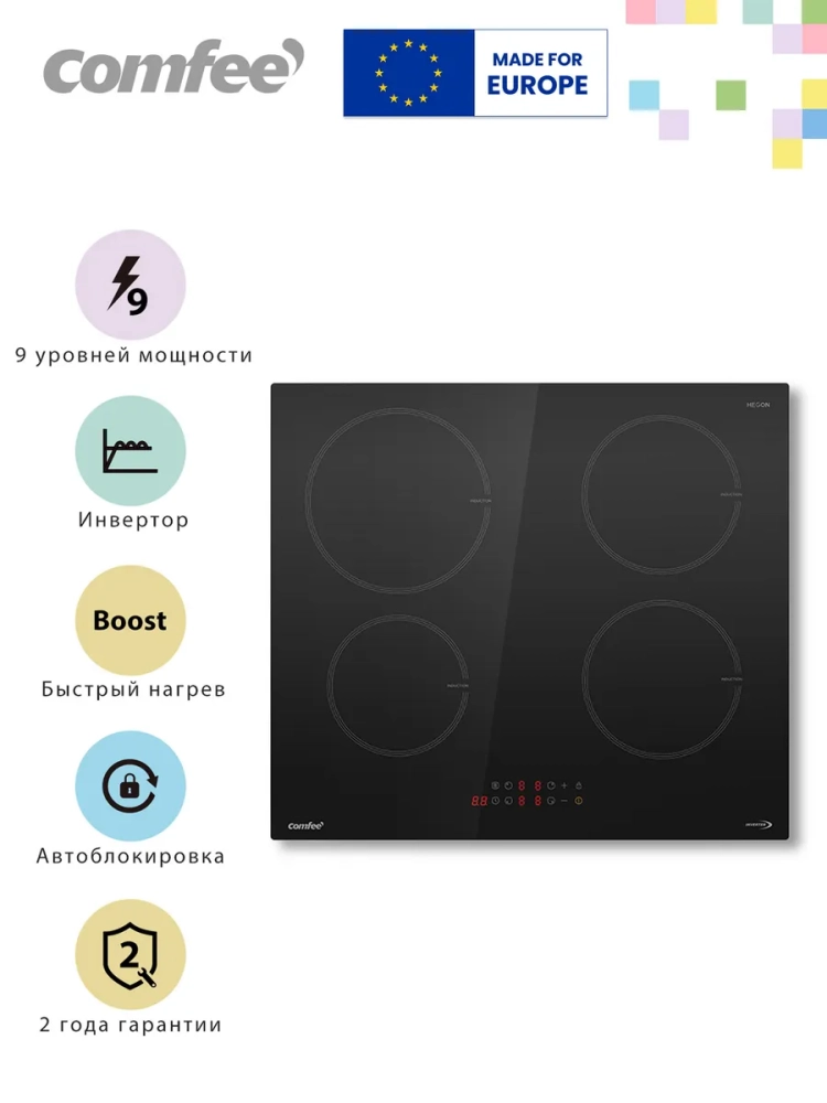 Встраиваемая индукционная варочная панель Comfee CIH601 - это сочетание стиля, функциональности и безопасности для вашей кухни.