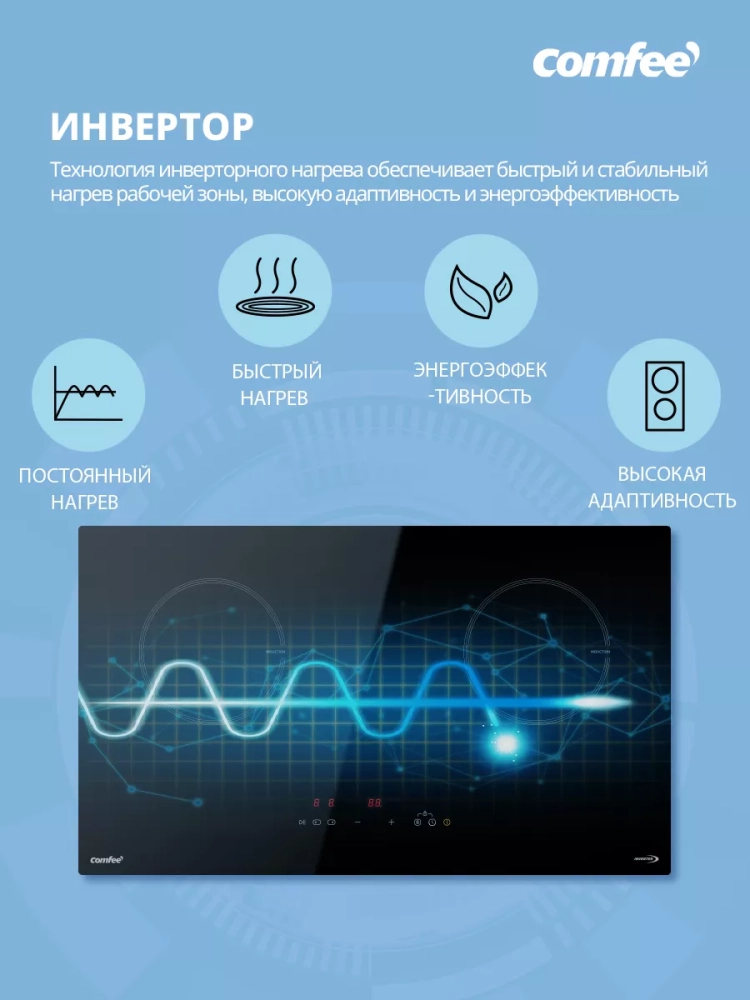 Встраиваемая индукционная варочная панель Comfee CIH701 - это современное и функциональное решение для вашей кухни. Она сочетает в себе стильный дизайн, высокую производительность и безопасность использования.