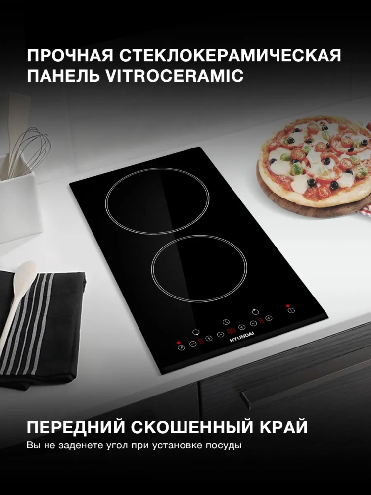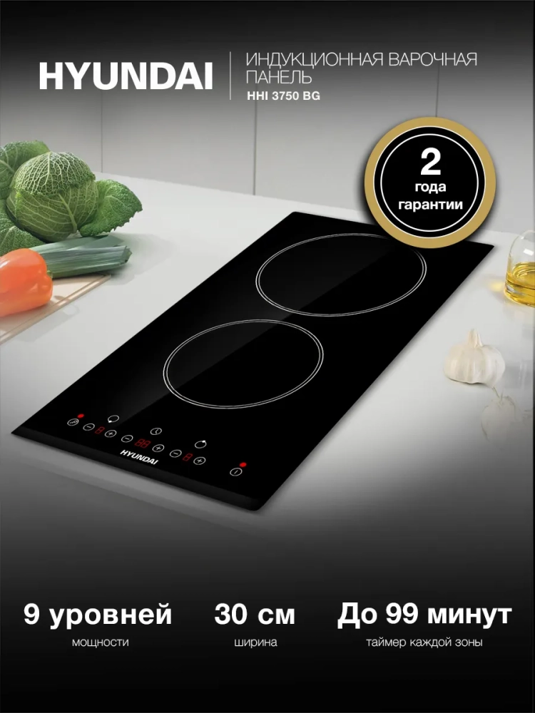 Индукционная варочная поверхность Hyundai HHI 3750 BG черный, независимая установка, материал поверхности стеклокерамика, индукционных конфорок 2