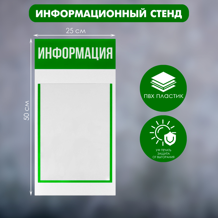 Информационный стенд «Информация» 1 плоский карман А4, цвет зелёный