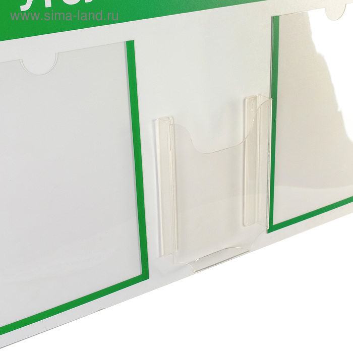 Информационный стенд «Уголок потребителя» 3 кармана (2 плоских А4, 1 объёмный А5), цвет зелёный