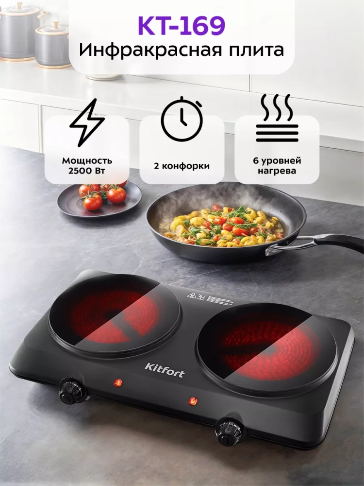 Инфракрасная плита представляет собой один из новых экологически чистых кухонных приборов. Инфракрасная плита Kitfort КТ-169 соответствует требованиям государственного стандарта и подходит для приготовления любых блюд.