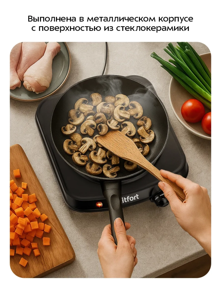 Инфракрасная плита Kitfort КТ-5422 соответствует требованиям государственного стандарта и подходит для приготовления любых блюд. Поскольку принцип работы инфракрасной плиты исключает прямое взаимодействие посуды с нагревательным элементом, ее использование помогает избежать проблем безопасности, обычно возникающих при готовке. Многие покупатели отдают этому устройству свое предпочтение.