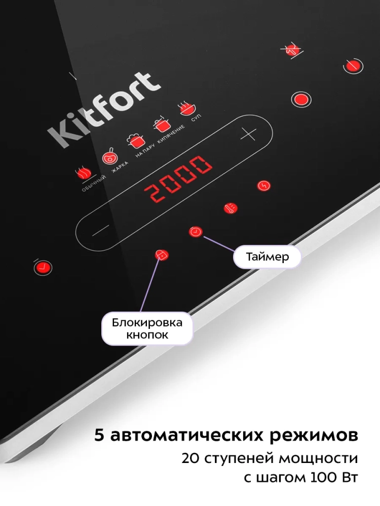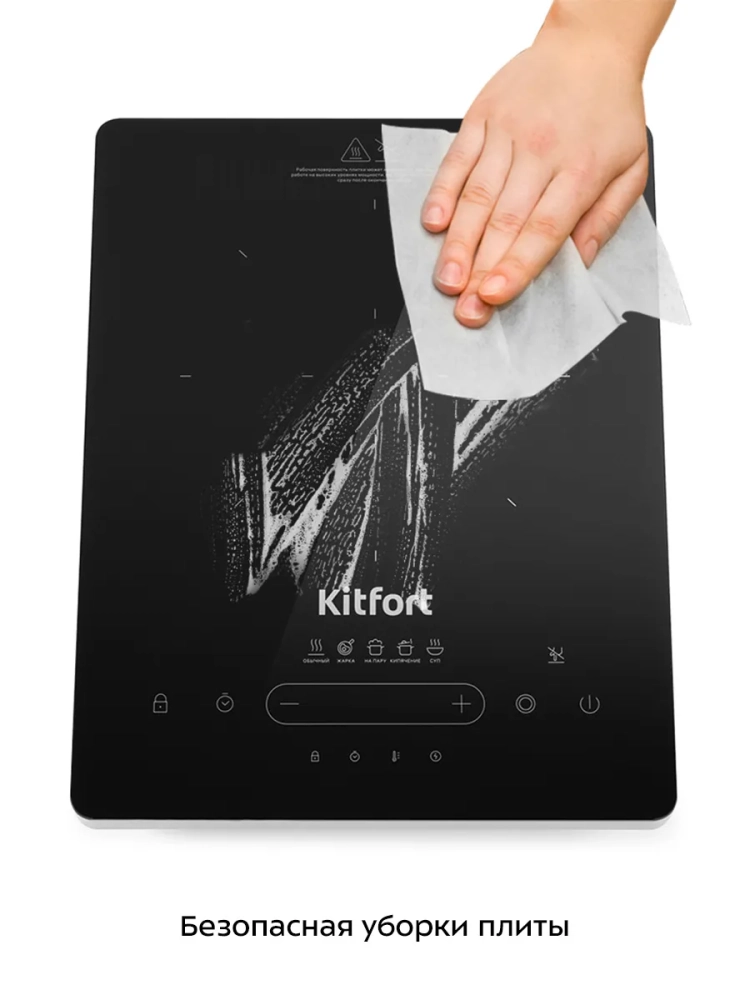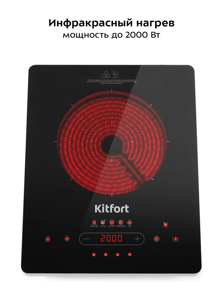 Инфракрасная плита Китфорт КТ-153 представляет собой один из новых экологически чистых кухонных приборов. Инфракрасная плита Kitfort КТ-153 соответствует требованиям государственного стандарта и подходит для приготовления любых блюд. Поскольку принцип работы инфракрасной плиты исключает прямое взаимодействие посуды с нагревательным элементом, ее использование помогает избежать проблем безопасности, обычно возникающих при готовке, и многие покупатели отдают этому устройству свое предпочтение. Плита КТ-153 выполнена в пластиковом корпусе с рабочей поверхностью из стеклокерамики и обладает максимальной мощностью 2000 Вт. На низких уровнях мощности регулировка мощности осуществляется плавнее, чем у обычных плит, ступеней мощности здесь больше. В отличие от индукционных плит инфракрасная плита не имеет импульсного режима. Нагрев происходит постоянно даже на минимальных мощностях. Инфракрасная плита позволяет легко жарить блины и готовить практически любые блюда на любой посуде, в том числе на тонких алюминиевых сковородах. Инфракрасная плита поможет сделать жизнь вашей семьи и здоровой и принесет чистоту на вашу кухню. 20 ступеней мощности.