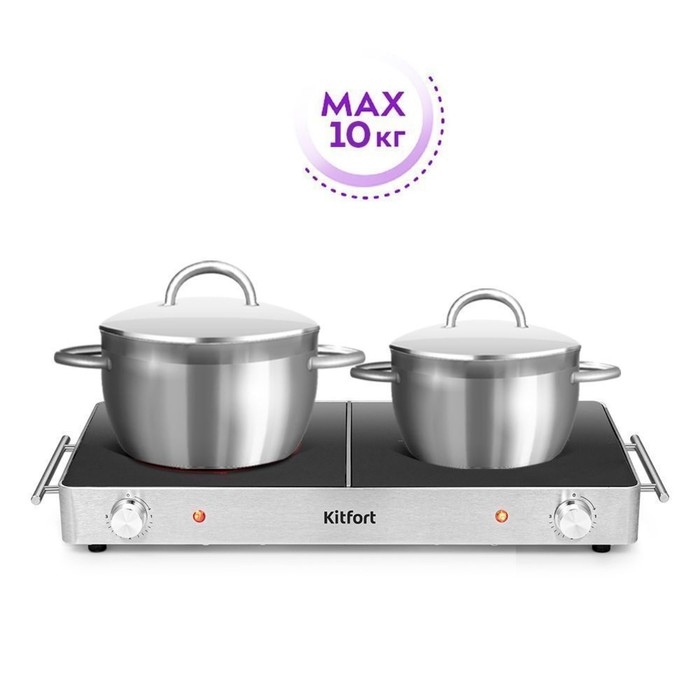Для инфракрасной плиты Kitfort KT-150 подходит практическая любая посуда, однако рекомендуется использовать посуду с плоским дном. Плита выдерживает вес не более 10 кг.