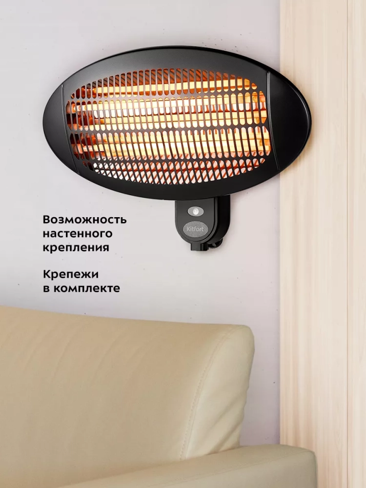 Обогреватель Kitfort KT-2714 предназначен для обогрева воздуха в квартирах, офисах, загородных домах и на верандах. Прибор имеет три уровня мощности.