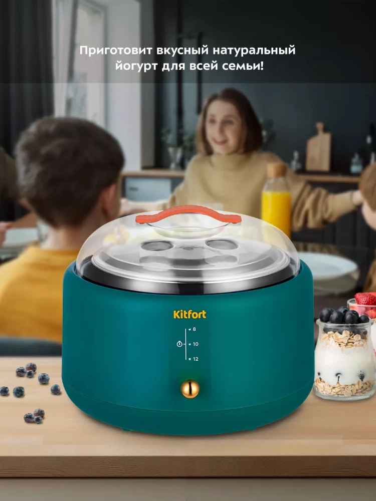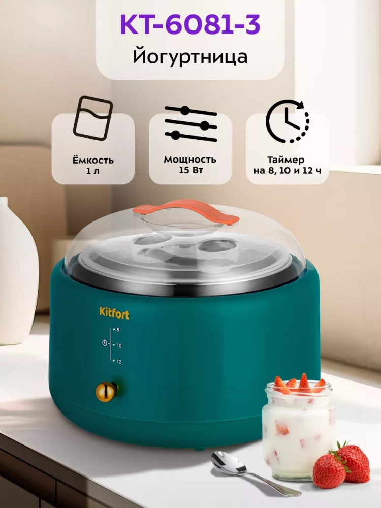 Йогуртница Kitfort КТ-6081 предназначена для приготовления вкусного и полезного домашнего йогурта. Прибор укомплектован чашей из нержавеющей стали емкостью 1 литр с пластиковой крышкой. Готовый йогурт можно хранить в холодильнике прямо в чаше. Йогуртница равномерно нагревает чашу с ингредиентами, поддерживая необходимую температуру.