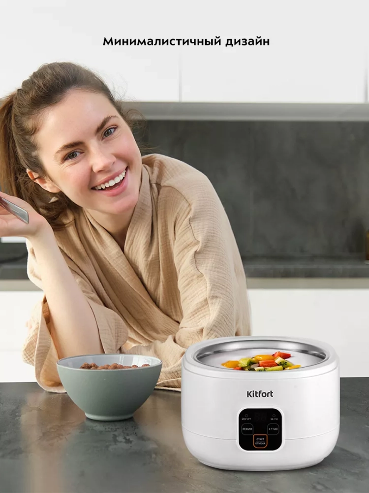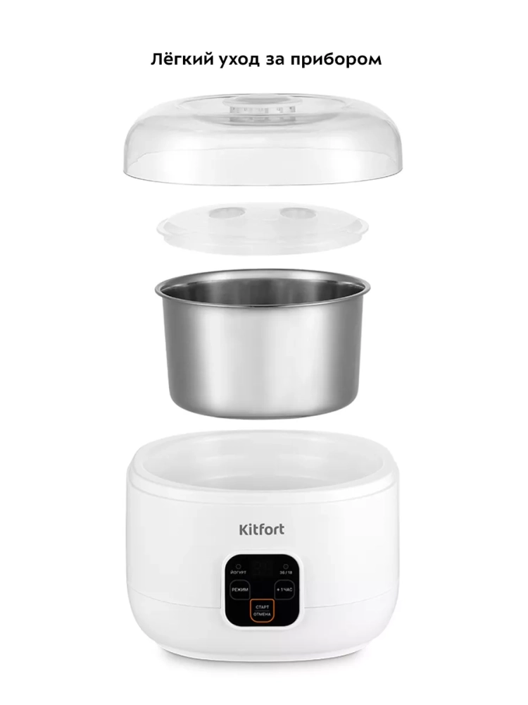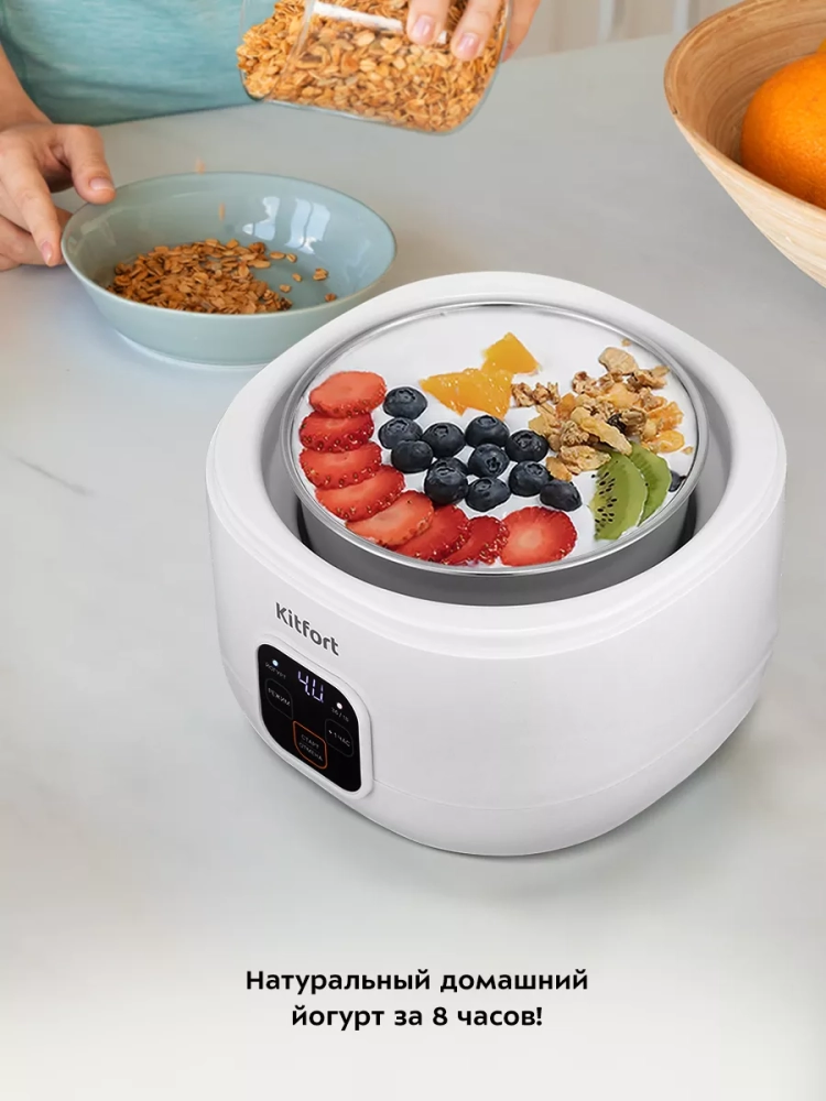 Техника для кухни от Kitfort отличается надежностью и долговечностью. Корпус выполнен из нержавеющей стали, что обеспечивает прочность и стильный внешний вид. Йогуртница проста в использовании: достаточно залить молоко, добавить закваску и установить таймер. В результате вы получите живые бактерии, которые полезны для здоровья.