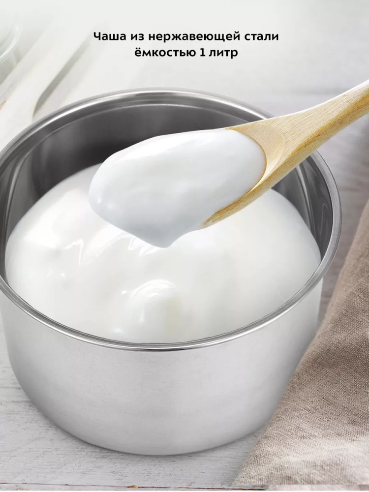 Комплект включает в себя чашу 1л, что достаточно для всей семьи. Электрическая йогуртница также подходит для приготовления греческого йогурта и китайских молочных смесей.