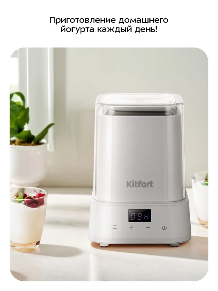 Йогуртница Kitfort КТ-9836 предназначена для приготовления вкусного и полезного домашнего йогурта. Прибор укомплектован стеклянной чашей емкостью 800 мл с пластиковой крышкой. Готовый йогурт можно хранить в холодильнике прямо в чаше.