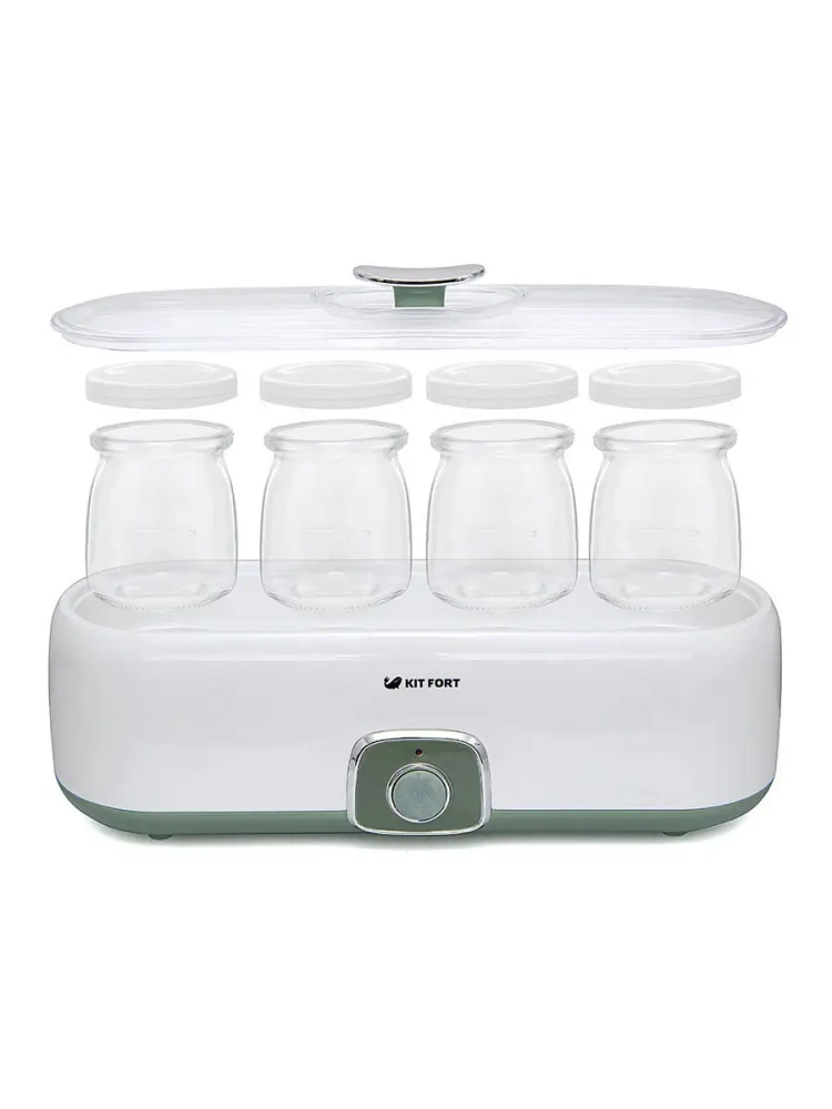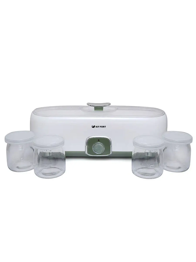 Йогуртница Kitfort КТ-2006 с механическим управлением предназначена для приготовления вкусного и полезного домашнего йогурта. Она имеет компактную овальную форму и вмещает 4 стеклянные баночки, в которых готовый йогурт можно хранить в холодильнике. Йогуртница Китфорт равномерно нагревает баночки с ингредиентами, поддерживая заданную температуру.
