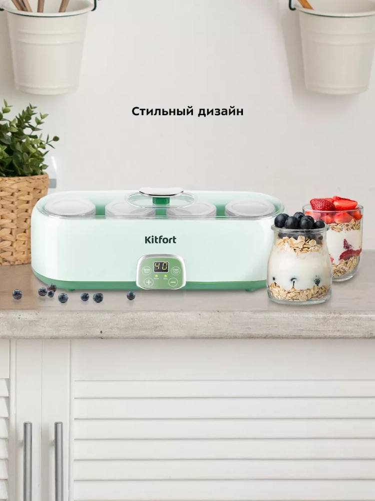 Йогуртница Китфорт КТ-6039 оснащена панелью управления для установки времени и температуры приготовления и светодиодным дисплеем для отображения настроек. Об окончании приготовления извещает звуковой сигнал.
