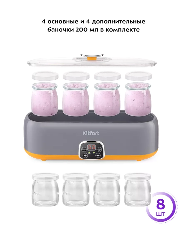Йогуртница Kitfort КТ-6040 — это идеальное решение для любителей домашнего йогурта. Эта техника с электронным управлением позволяет легко приготовить вкусный и полезный продукт в домашних условиях. Компактная овальная форма бытового прибора делает его удобным для размещения на кухне, а наличие 4 стеклянных баночек обеспечивает возможность хранения готового йогурта в холодильнике. Банки равномерно нагреваются, что способствует поддержанию оптимальной температуры для приготовления. Йогуртница оснащена панелью управления, которая позволяет установить время и температуру приготовления с помощью таймера. Светодиодный дисплей отображает все настройки, а звуковой сигнал оповещает об окончании процесса приготовления. Это делает использование устройства простым и интуитивно понятным. Для того чтобы приготовить йогурт в этой модели от kitfort, достаточно смешать молоко с закваской и задать нужные параметры на панели управления. Соблюдая рекомендации по приготовлению, вы получите замечательный домашний йогурт в банке без лишних усилий. Эта техника не только облегчает процесс создания любимого лакомства, но и гарантирует его качество благодаря продуманной конструкции и функциональности. Хранение готового продукта также не вызывает затруднений благодаря удобным банкам из комплекта. Йогуртница Kitfort КТ-6040 — это надежное устройство для тех, кто ценит натуральные продукты собственного производства.