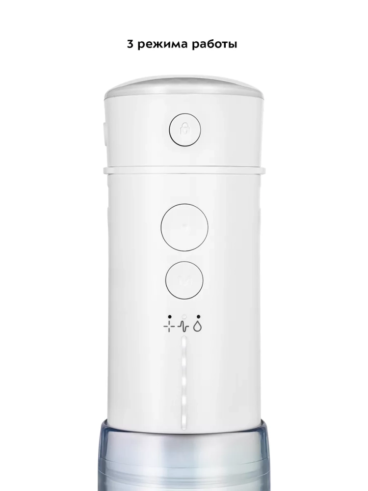 Прибор работает в трех режимах: «Точечно», «Пульс» и «Норма». Для каждого режима можно настроить силу струи. Всего 5 уровней силы струи.