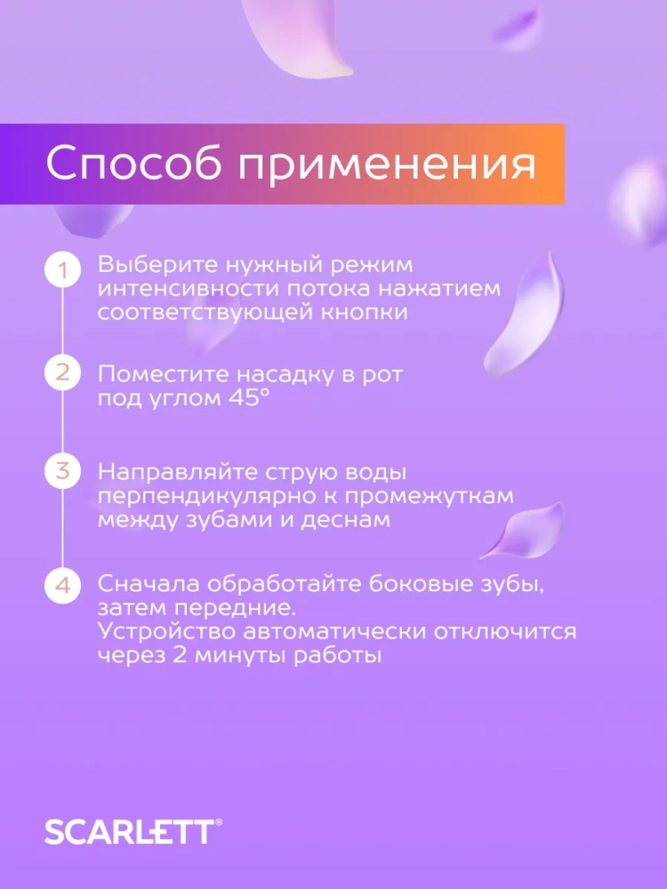 Новая линейка ирригаторов Scarlett — идеальное сочетание функциональности и эстетики, созданных с заботой о вашем здоровье и красоте. Вдохновленные современными трендами, мы предлагаем решения, которые сделают процесс ухода за зубами не только эффективным, но и приятным.