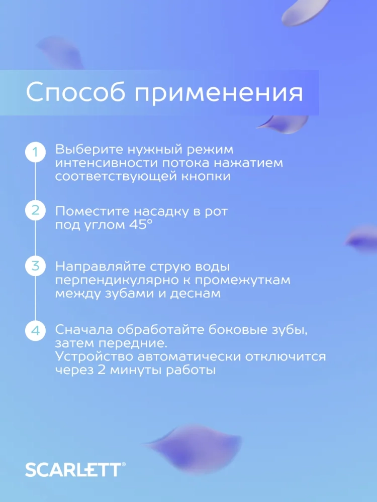 Новая линейка ирригаторов Scarlett — идеальное сочетание функциональности и эстетики, созданных с заботой о вашем здоровье и красоте. Вдохновленные современными трендами, мы предлагаем решения, которые сделают процесс ухода за зубами не только эффективным, но и приятным.