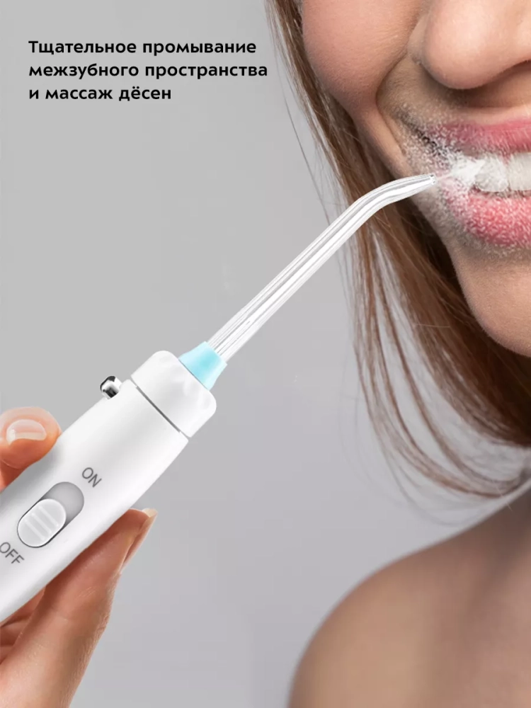Резиновые ножки с присосками обеспечивают прочную фиксацию ирригатора на раковине или на столике в ванной комнате.