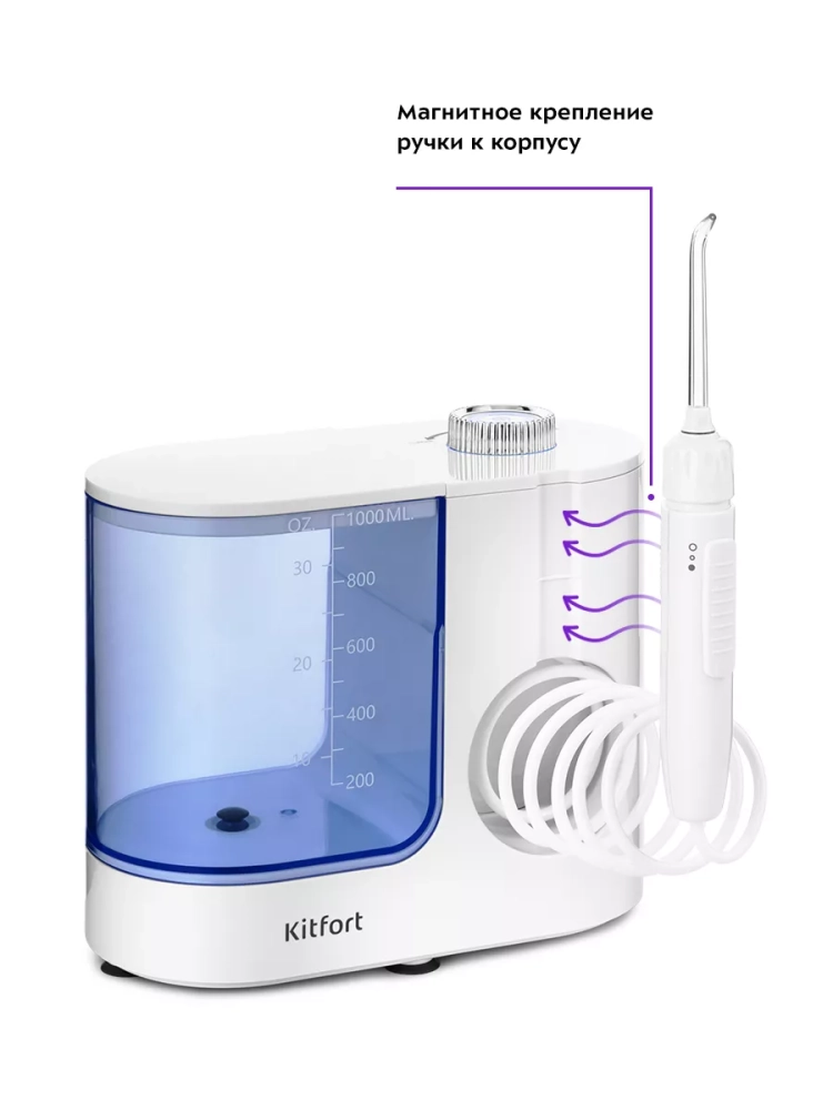 Ирригатор Kitfort КТ-2914 — это прибор для ухода за полостью рта. Он очень прост в использовании: налейте воду (или специальный раствор для полоскания зубов) в резервуар, выберите подходящий вам режим и начинайте очистку.