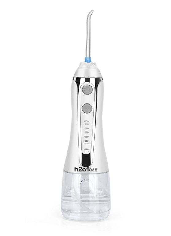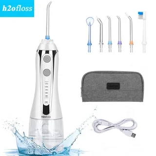 Ирригатор H2Ofloss – беспроводной аппарат, с помощью струи воды тщательно очищает зубной налет и вымывает остатки пищи из труднодоступных мест, также эффективен для очищения брекетов, имплантатов, мостов, коронок. Соблюдение гигиены полости рта обеспечивает, значительное снижение риска заболеваний зубов и десен, свежее дыхание, экономию на посещениях стоматолога. Основные преимущества, ирригатора H2Ofloss: легко размещается даже в небольшой дорожной сумке, имеет малый вес – до 330 гр. и дорожную косметичку. Не нужна розетка в ванной, работает от аккумуляторной батареи укомплектован самым мощным аккумулятором 2500mAh . Аппарат имеет 5 режимов давления воды от 40 до 110 PSI и большой резервуар для воды 300мл , 8 насадок включают 2 зубные щетки. Насадки вращаются на 360 градусов, что поможет очистить зубы с внешней и внутренней сторон. Влагозащита IPX7 — водяной насос / двигатель и электрическая плата / аккумулятор имеют защиту от попадания влаги.