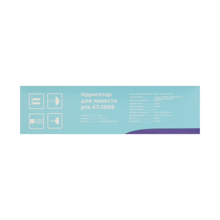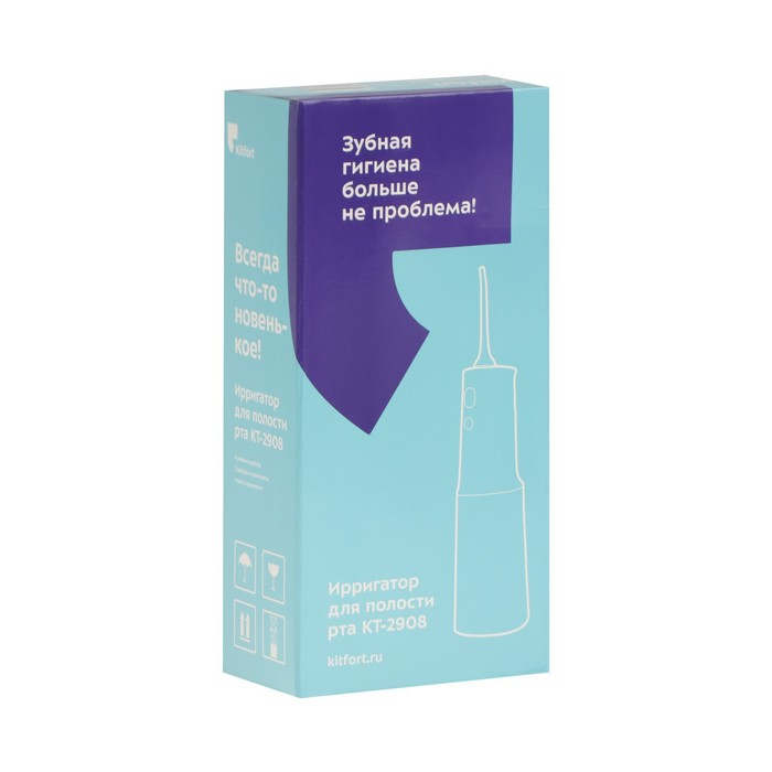 Ирригатор Kitfort КТ-2908, портативный, 5 Вт, 300 мл, 4 режима, 2 насадки, от АКБ, белый