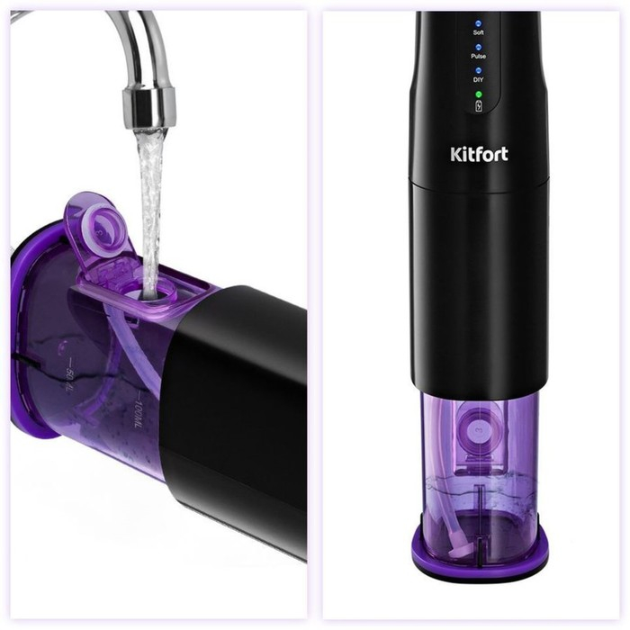 Ирригатор Kitfort КТ-2912-1, портативный, 150-360 мл, 4 режима, 4 насадки, АКБ, черный