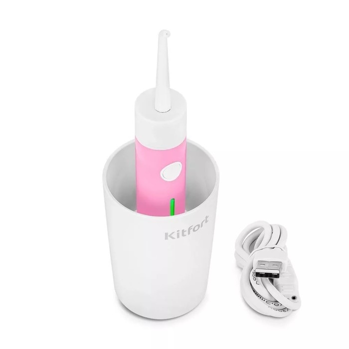 Ирригатор Kitfort КТ-2957-1, портативный, 320 мл, 3 режима, 2 насадки, от АКБ, бело-розовый