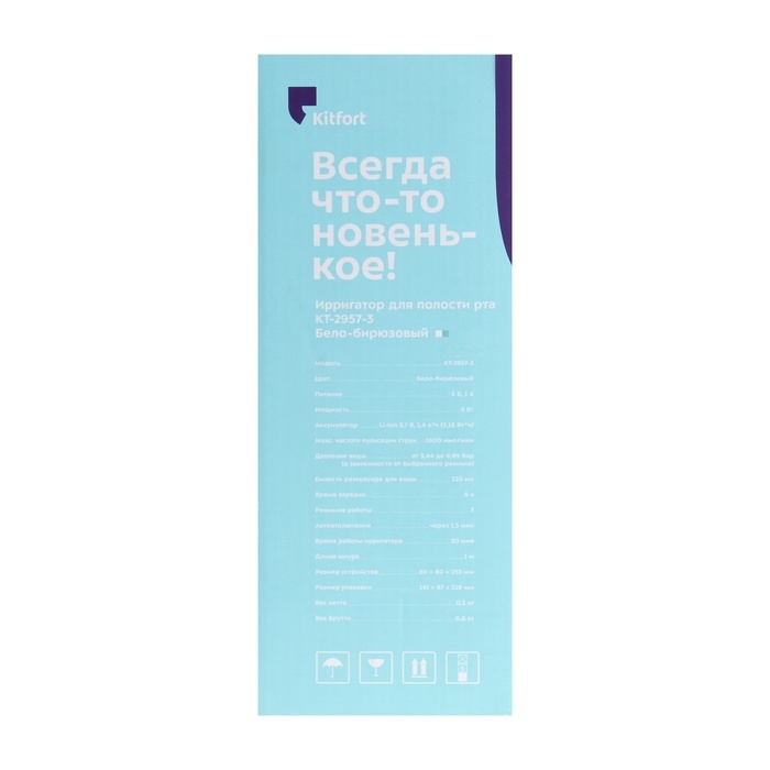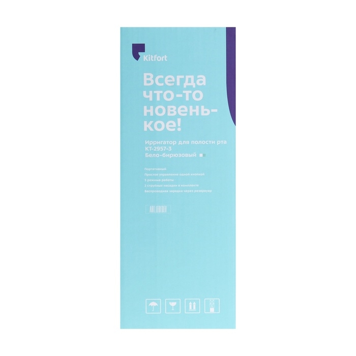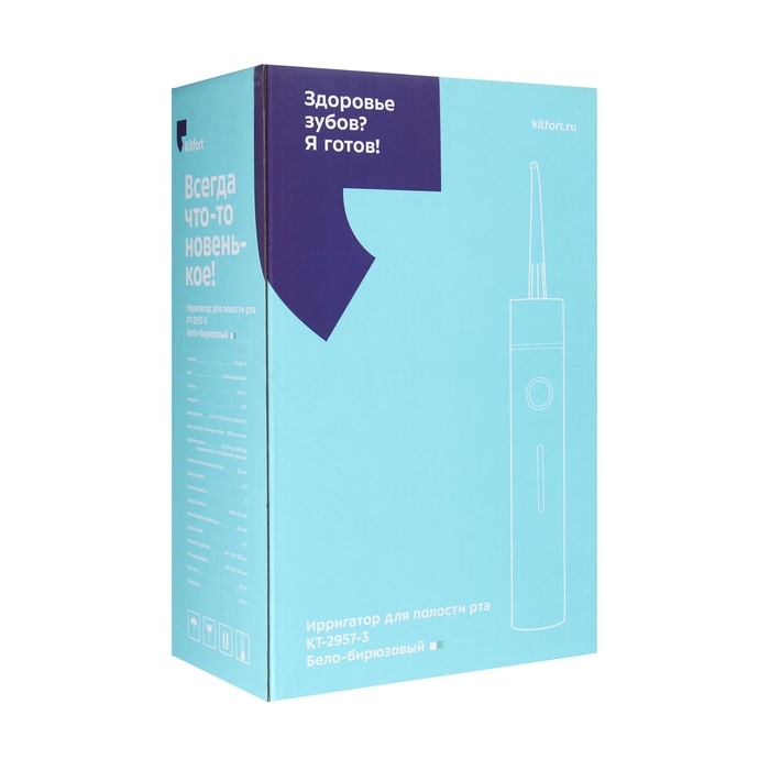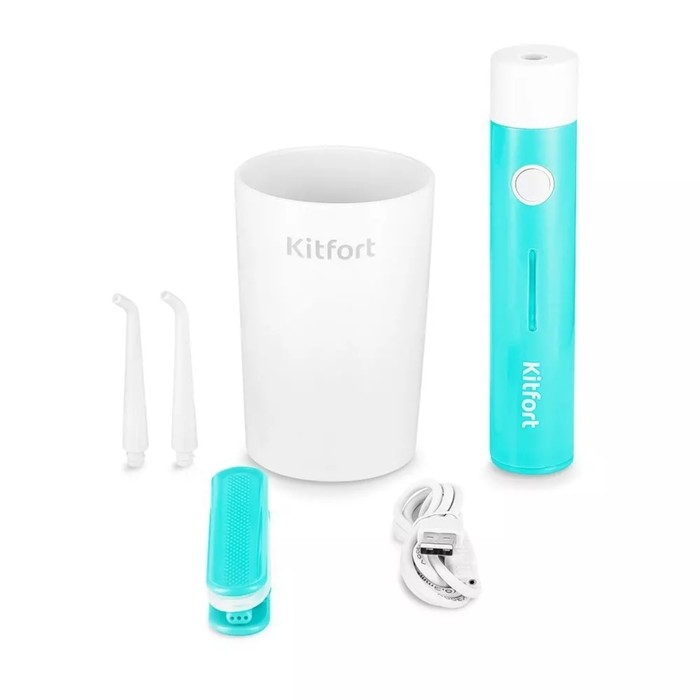 Ирригатор Kitfort КТ-2957-3, портативный, 320 мл, 3 режима, 2 насадки, от АКБ, бело-голубой
