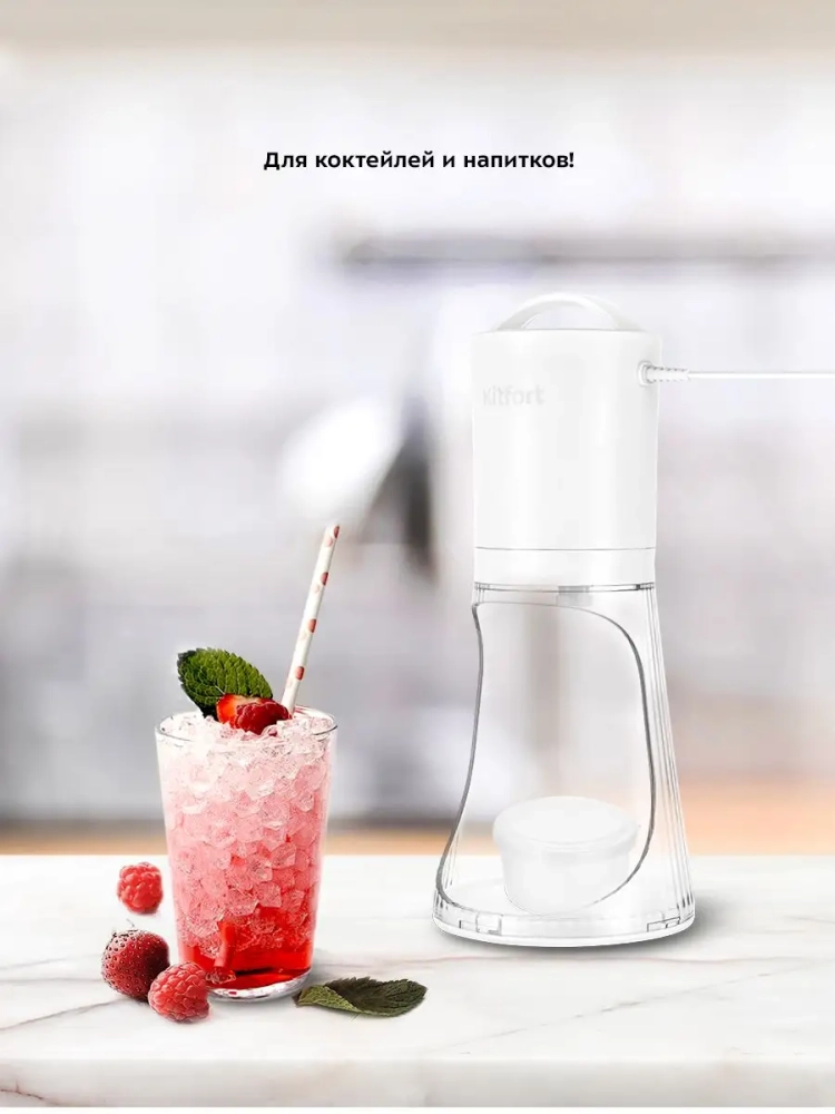 Измельчитель для льда Kitfort КТ-4070 предназначен для измельчения ледяной массы в ледяную стружку. Два режима работы позволяют получать стружку разного размера. В измельчитель можно загружать формованный лед (кубиковый или пальчиковый), а также ледяную шайбу, для изготовления которой в комплекте устройства предусмотрено 2 специальных контейнера для заморозки льда.