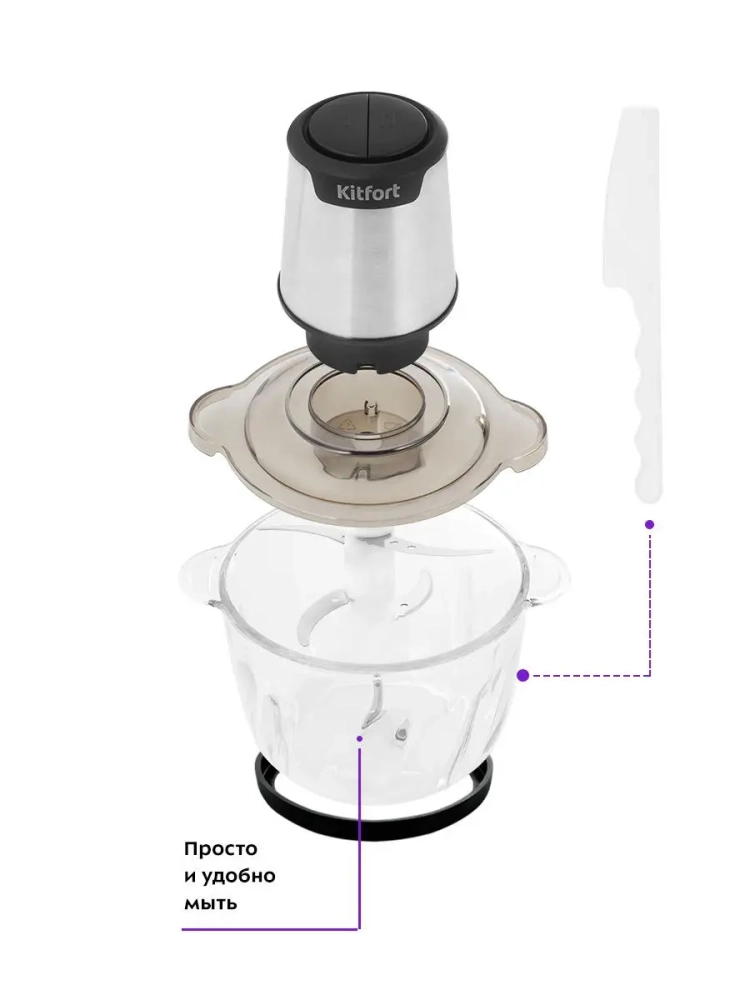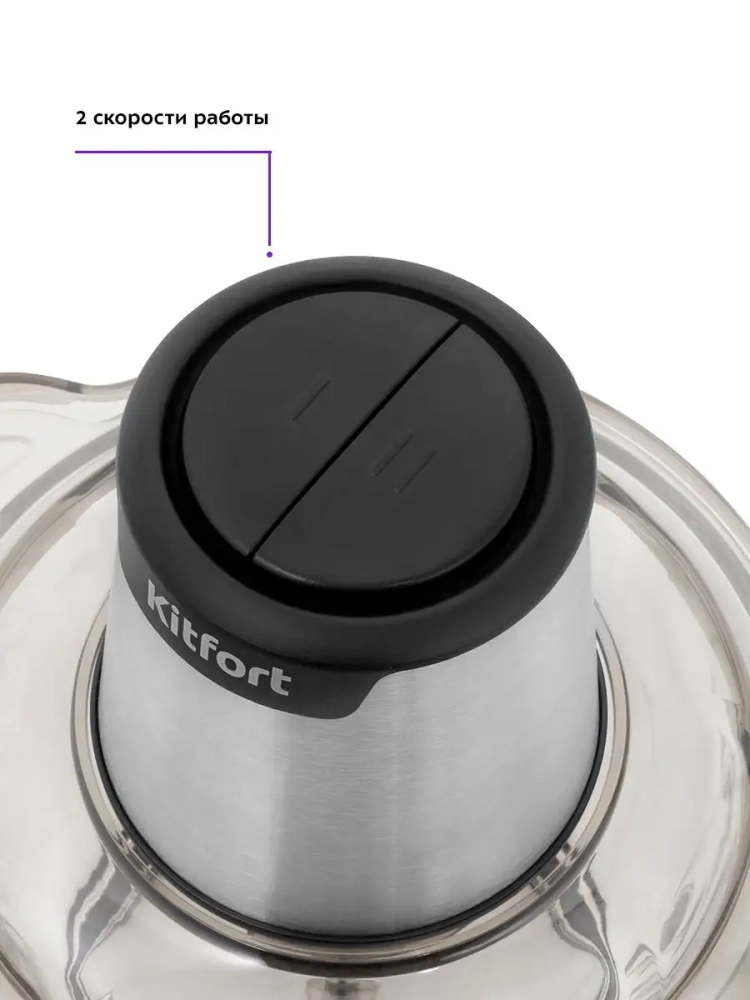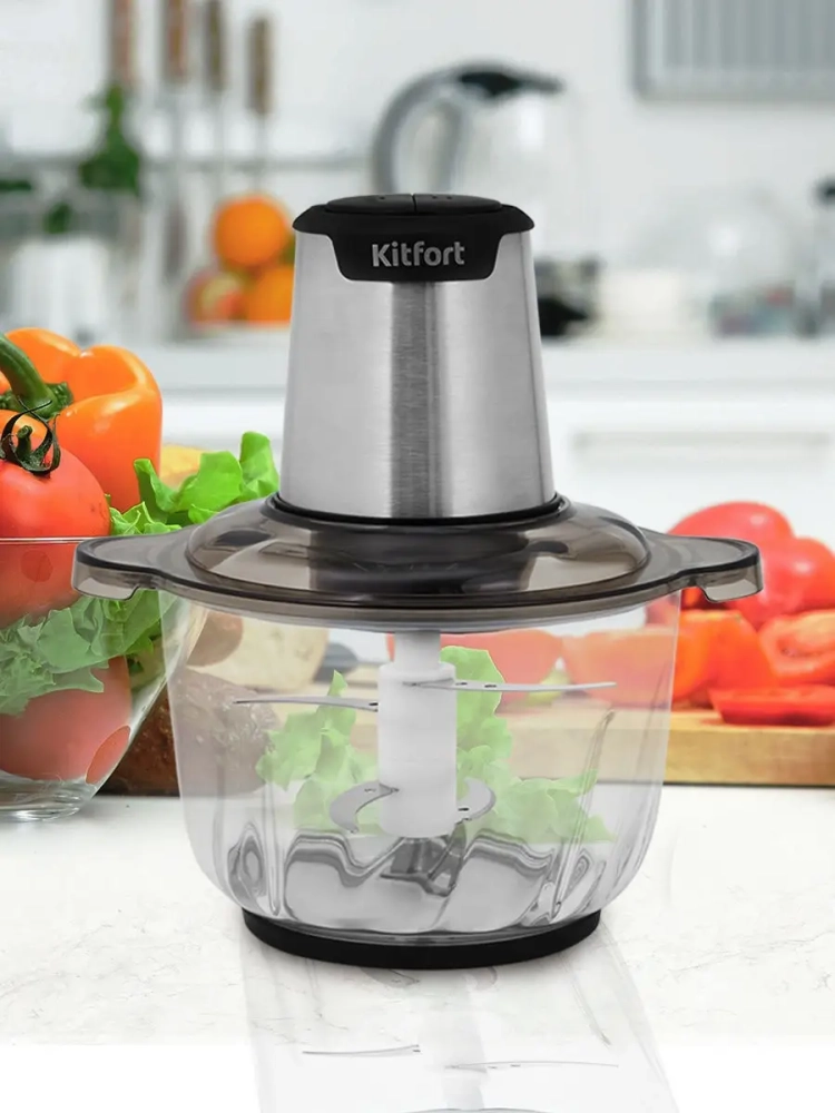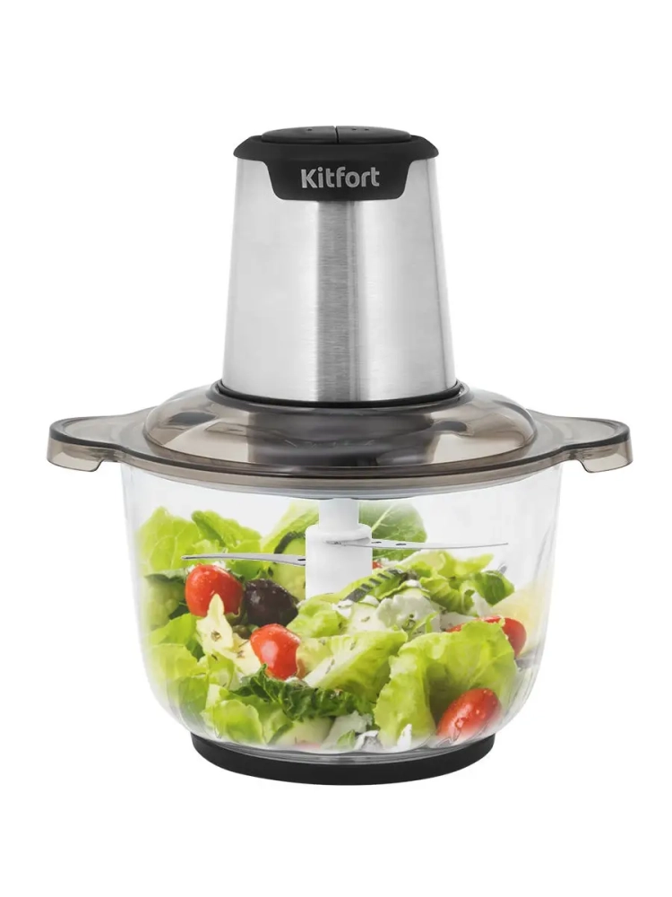 Измельчитель Kitfort КТ-3012 быстро измельчает мясо, твердый сыр, овощи, травы, чеснок, ягоды и многое другое. Двойной нож измельчает продукты практически по всей высоте чаши. Легкая чаша измельчителя сделана из экологически чистого материала - стекла. Поверхность чаши изнутри фигурная. Чашу можно закрыть крышкой и использовать для хранения продуктов. Для обеспечения безопасности КТ-3012 может работать только с установленным моторным блоком. В комплекте к измельчителю идут защитные кожухи для ножей. Благодаря резиновой подкладке под чашу измельчитель меньше скользит по столу, а также дополнительно снижается вибрация и уровень шума при работе. Управление прибором осуществляется нажатием на кнопки первой и второй скорости. Измельчитель очень легко и быстро мыть, т.к. нож разборный.