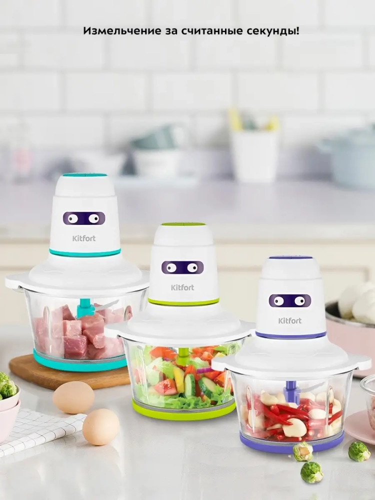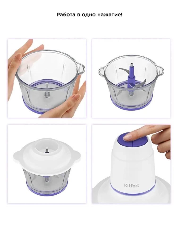 Измельчитель Kitfort КТ-3050 - устройство для быстрого измельчения мяса, твердого сыра, овощей, трав, чеснока, ягод и многих других продуктов. Двойной нож измельчает ингредиенты практически по всей высоте чаши. Процесс измельчения пищи происходит намного быстрее, чем при использовании ручных кухонных приспособлений. Простой кухонный нож для ручной нарезки и измельчения не выдерживает никакой конкуренции с этим компактным устройством. Любой салат будет готов за считанные минуты. Все что потребуется - подготовить продукты для резки и следить за степенью измельчения. Чаша измельчителя выполнена из прочного закаленного стекла, что дает возможность наблюдать за процессом и контролировать степень измельчения. Чашу можно закрыть крышкой и использовать для хранения продуктов в холодильнике. Для обеспечения безопасности КТ-3050 может работать только с правильно установленным моторным блоком на крышке чаши.