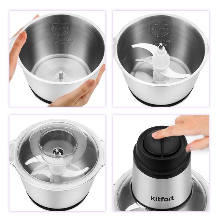 Измельчитель Kitfort КТ-3025, нержавеющая сталь, 250 Вт, 2 л, 2 скорости, металлик