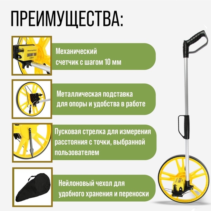 Измерительное колесо ТУНДРА, механическое, диаметр 318 мм, диапазон измерения 0-9999.9 м