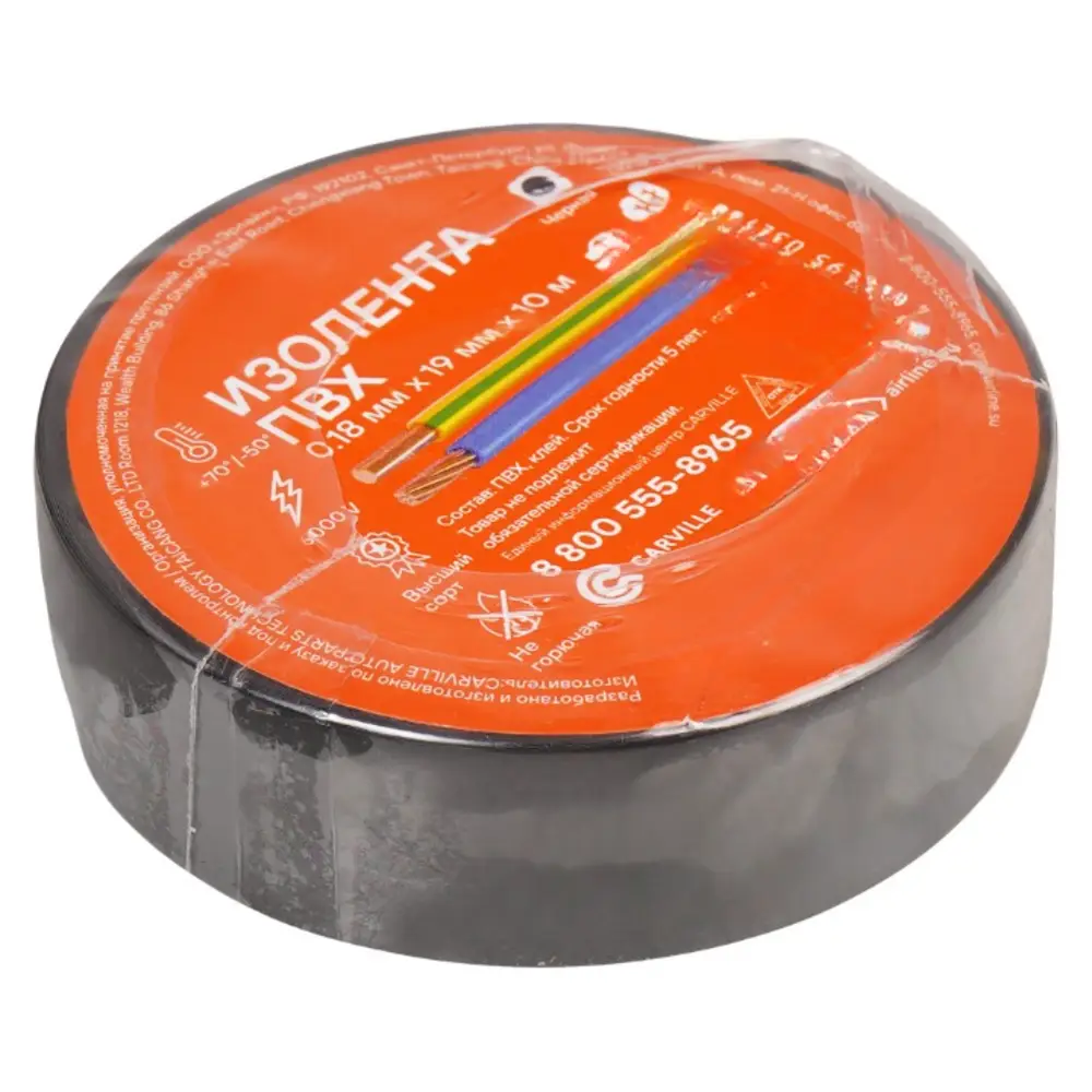 Изолента ПВХ, черная, 19 мм*10 м