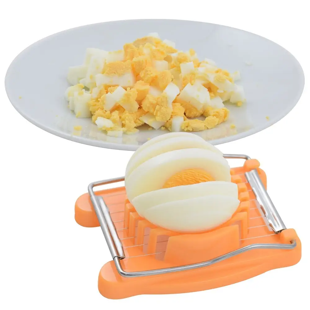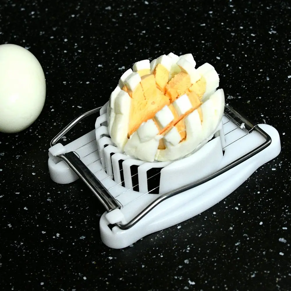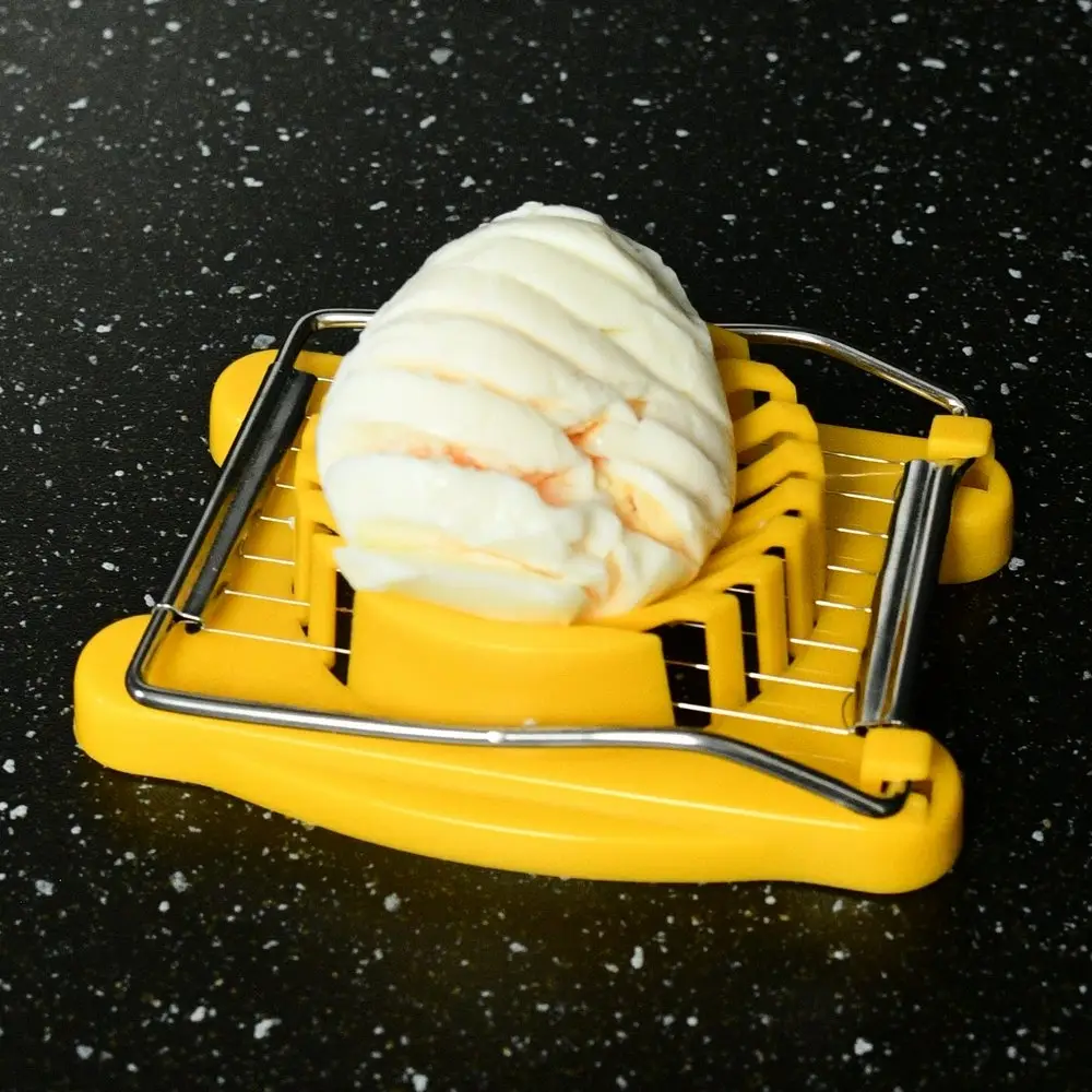 Используется во время приготовлении пищи. С помощью этого приспособления Вы сможете быстро и легко нарезать вареные яйца в салат, для заливного, а также для украшения различных блюд. Изготовлено из пластмассы (полипропилен), струны из коррозионностойкой стали. После применения промыть мягкой щеткой или губкой, можно с использованием жидких моющих средств.
