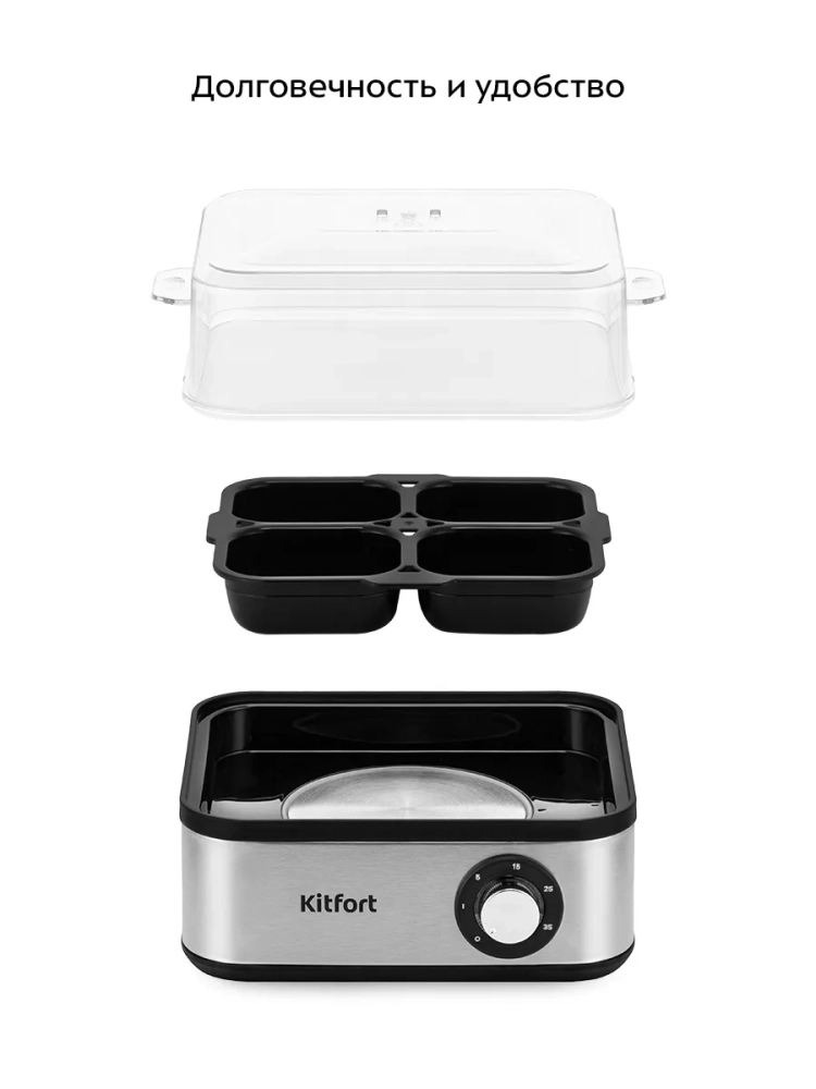 Форма устройства разработана с учетом современных требований к дизайну и функциональности, что делает яйцеварку Kitfort стильным дополнением к любой кухне. Автоматическая система управления и электрическая мощность обеспечивают надежную и стабильную работу, а также долговечность устройства.