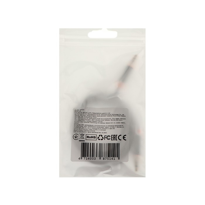 Кабель аудио AUX Defender JACK01-03, Jack 3.5 мм(m)-Jack 3.5 мм(m), 1.2 м, серый