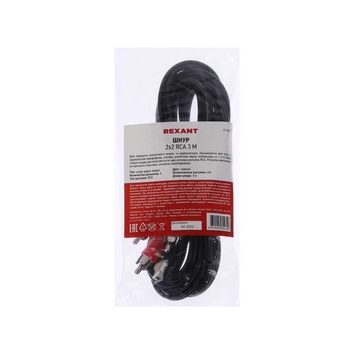 Кабель аудио/видео REXANT, 2xRCA(m)-2xRCA(m), 3 м, чёрный
