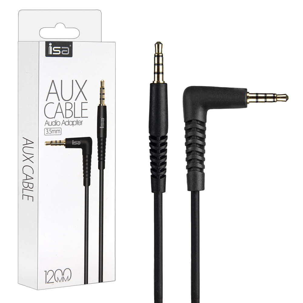 Кабель AUX 1,2M 3,5 на 3,5 Г-образный штекер черный ISA
