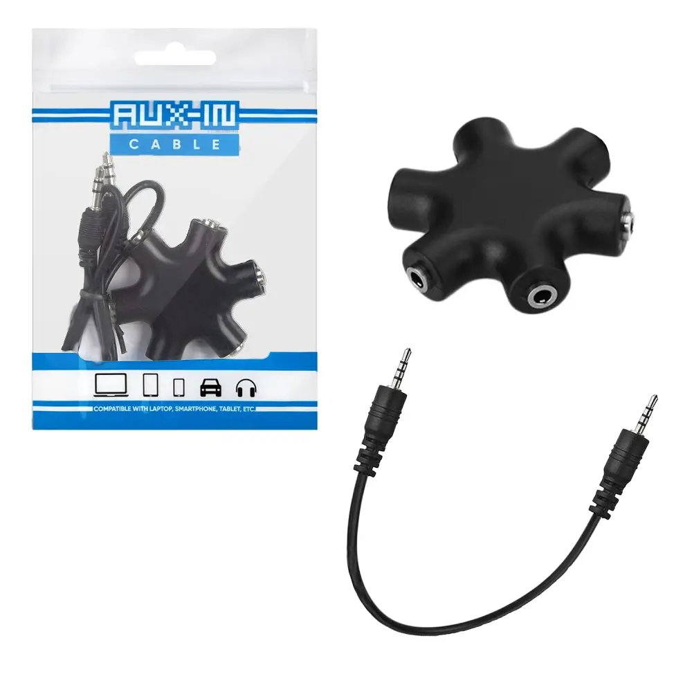 Кабель AUX 3,5 мм 6 в 1 черный (1200 шт/кор)